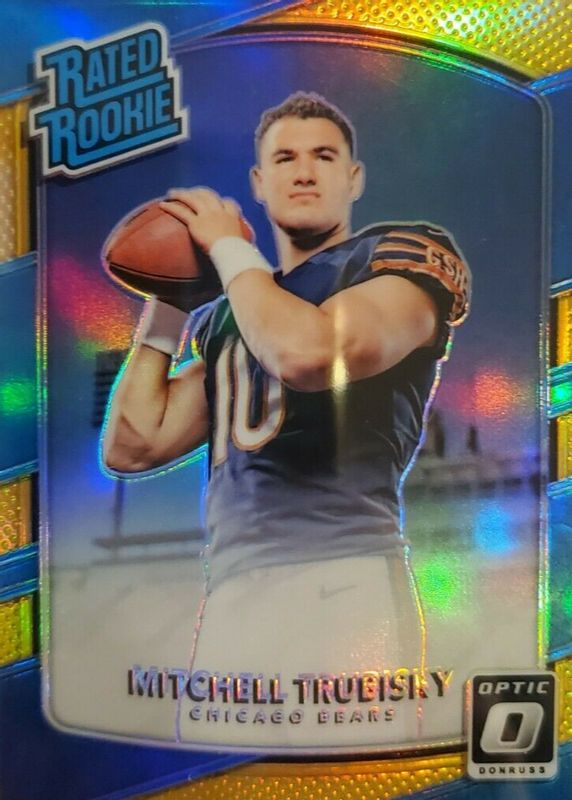 The Mitchell Trubisky 2017 Optic #178 Gold /10 Rookie card in Raw condition has not changed in price in the last 30 days and was last sold for $3.25 .