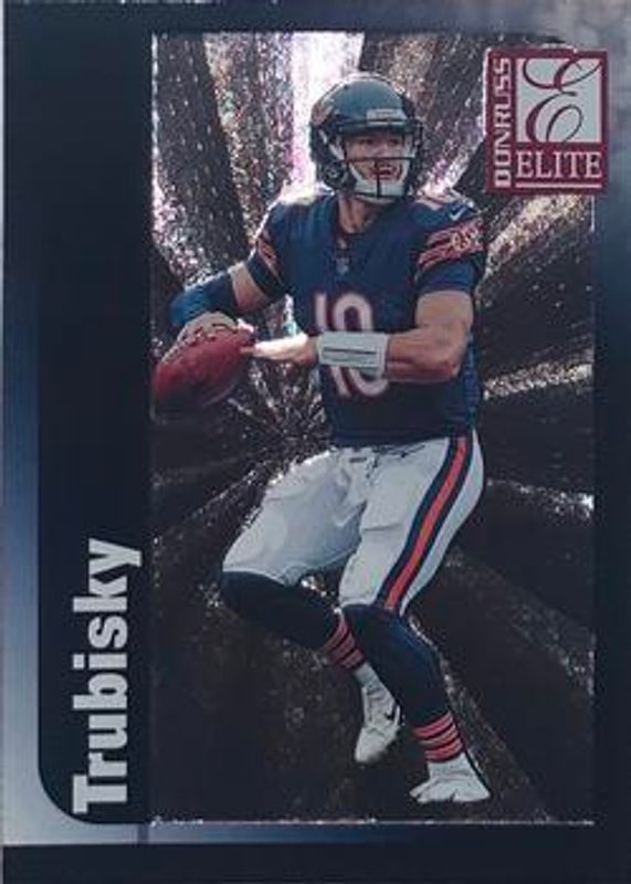 The Mitchell Trubisky 2019 Elite #26 1999 Elite card is 1 of 20 Mitchell Trubisky's card variations in the 2019 Elite set being tracked by Sports Card Investor, including Green, Red /299, Purple /99, Orange /49, and Aspirations Die-Cut /24.