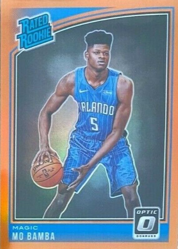 The Mo Bamba 2018 Optic #160 Orange /199 Rookie card in Raw condition has not changed in price in the last 30 days and was last sold for $1.49 .