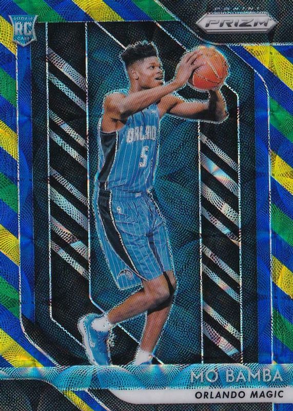 The Mo Bamba 2018 Prizm #99 Choice Blue Yellow Green Rookie card in Raw condition has not changed in price in the last 30 days and was last sold for $2.25 .