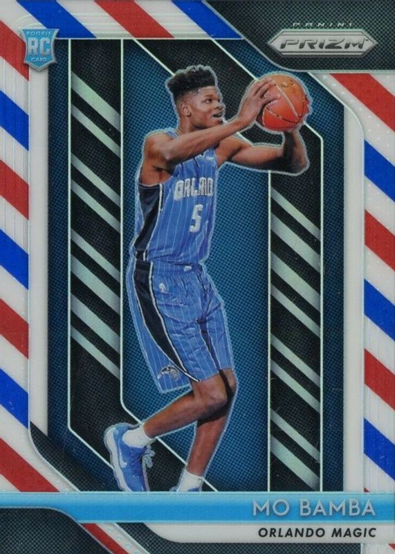 The Mo Bamba 2018 Prizm #99 Red White Blue Rookie card in Raw condition has not changed in price in the last 30 days and was last sold for $1.00 .