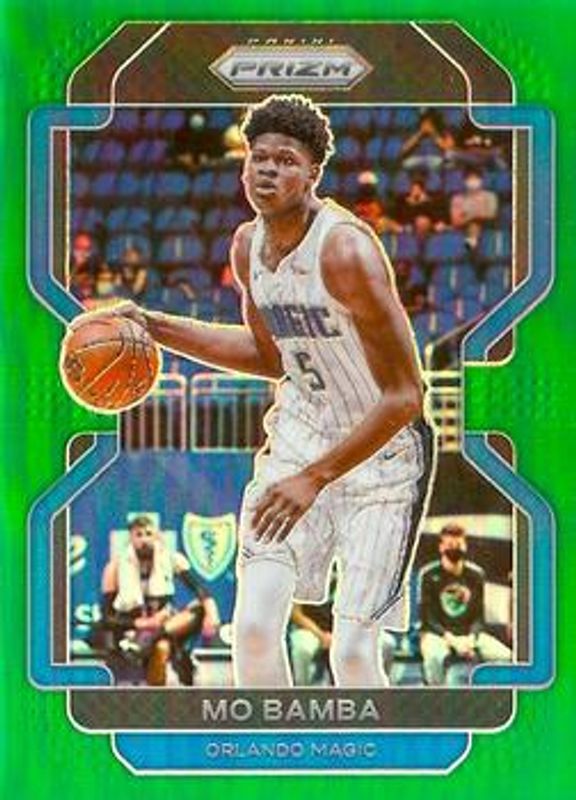 The Mo Bamba 2021 Prizm #42 Green card is 1 of 60 Mo Bamba's card variations in the 2021 Prizm set being tracked by Sports Card Investor, including Base, Blue NBA 75th Anniversary, Blue Wave, Choice Blue Yellow Green, and Factory Set Blue Hyper.