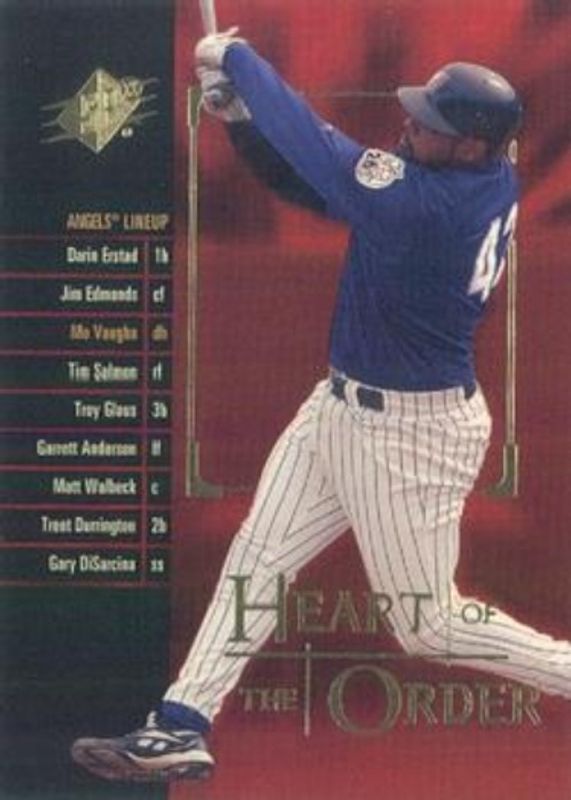 The Mo Vaughn 2000 SPx #H-9 Heart of the Order card is 1 of 5 Mo Vaughn's card variations in the 2000 SPx set being tracked by Sports Card Investor, including Base /1500, Radiance /100, Spectrum /1, and Power Brokers.