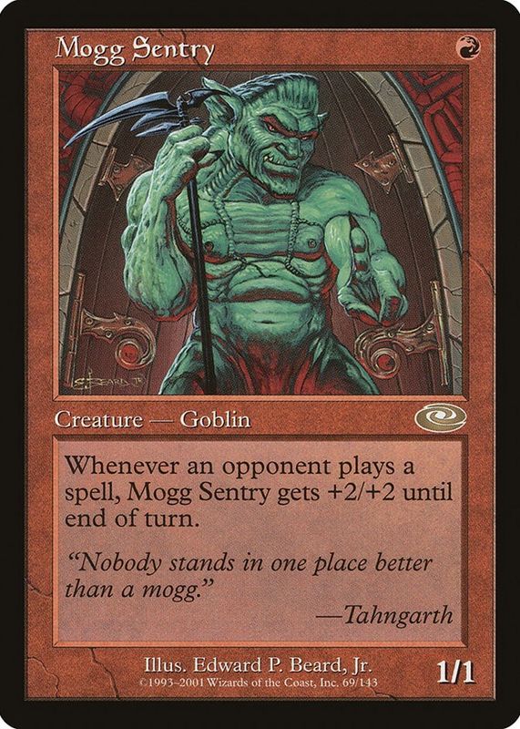 The Mogg Sentry 2001 Planeshift #69 Base card in Raw TCG (Lightly Played) condition has not changed in price in the last 30 days and was last sold for $0.99 .