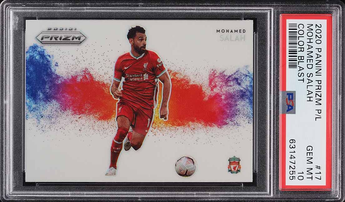 The Mohamed Salah 2020 Prizm Premier League #17 Color Blast /(SSP) card in Raw condition has not changed in price in the last 30 days and was last sold for $460.00 .