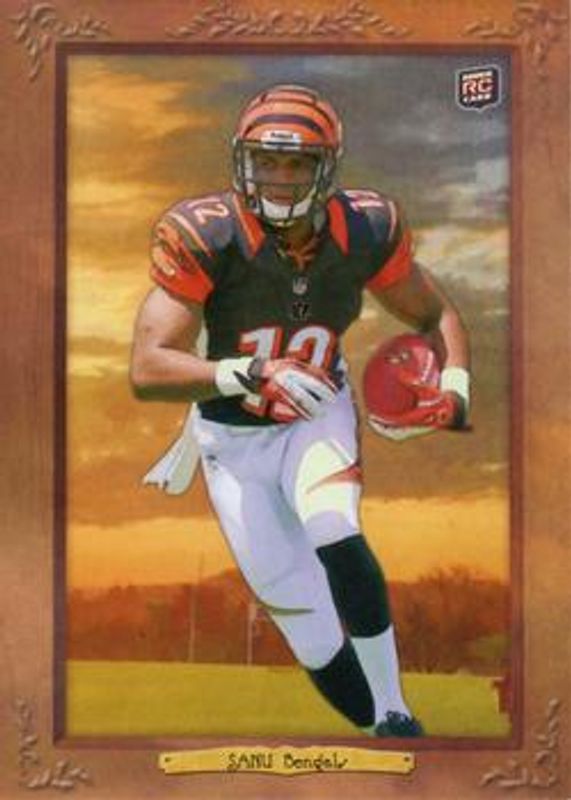 The Mohamed Sanu 2012 Topps Turkey Red #8 Base Rookie card is 1 of 8 Mohamed Sanu's card variations in the 2012 Topps Turkey Red set being tracked by Sports Card Investor, including Printing Plate Black /1, Printing Plate Cyan /1, Printing Plate Magenta /1, Printing Plate Yellow /1, and Mini.