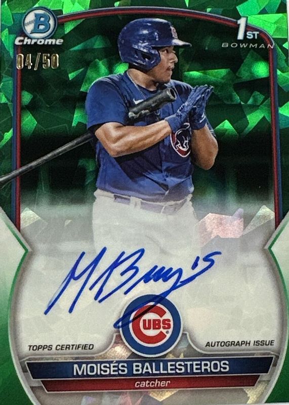 2023 Bowman Chrome Sapphire Moises Ballesteros Green /50 Auto Cubs 1st Bowman