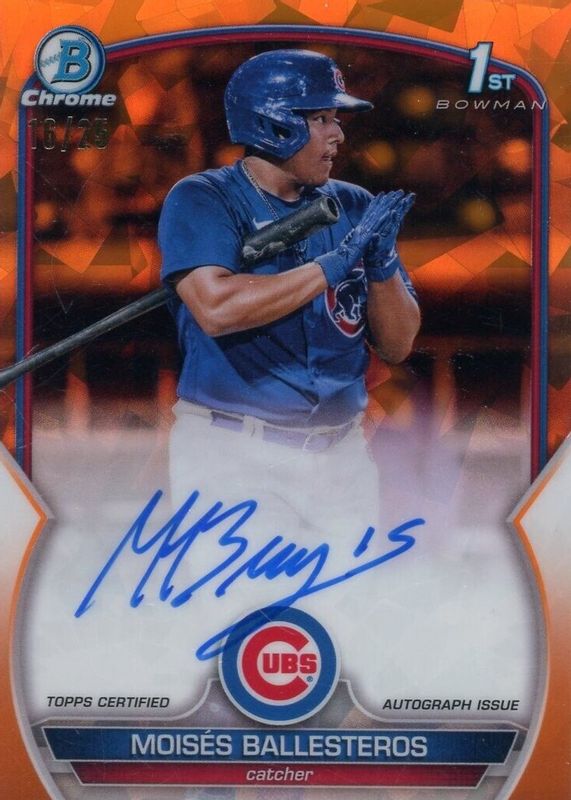 Auctions Ending Soon for Moises Ballesteros 2023 Bowman Sapphire Edition #BSPA-MBS Chrome Prospect Auto - Orange /25 (1st) RAW