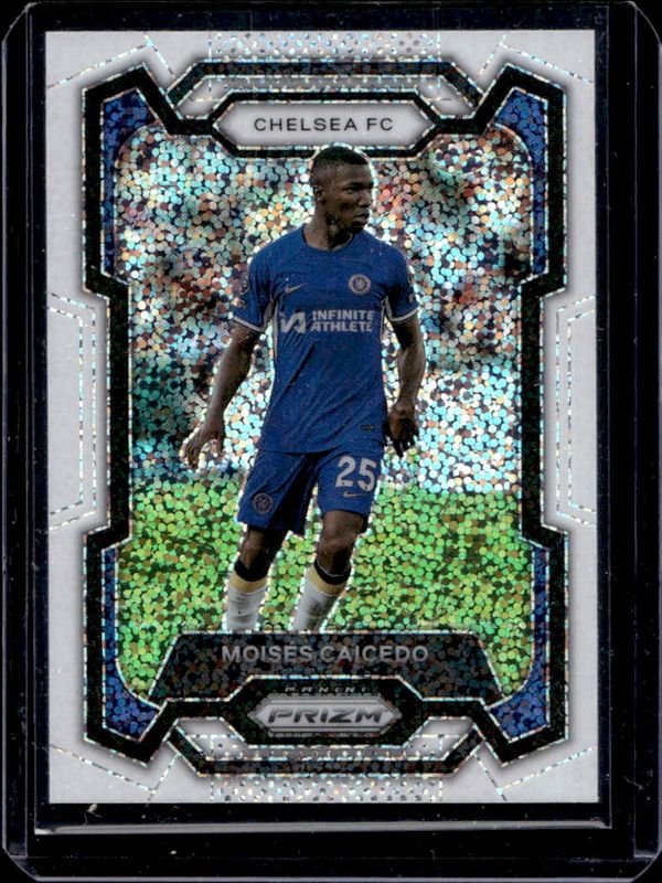 The Moises Caicedo 2023 Prizm Premier League #185 White Sparkle /(SSP) card is 1 of 63 Moises Caicedo's card variations in the 2023 Prizm Premier League set being tracked by Sports Card Investor, including Base, Blue Mosaic, Breakaway, Breakaway Orange, and Choice.