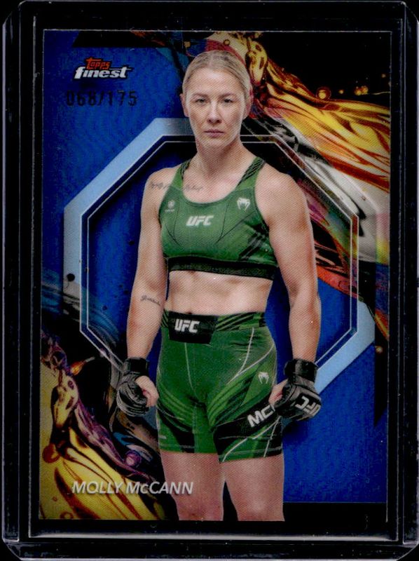 The Molly McCann 2024 Topps Finest UFC #111 Blue Refractor card is 1 of 48 Molly McCann's card variations in the 2024 Topps Finest UFC set being tracked by Sports Card Investor, including #111 Base, #57 Base, #111 Aqua Glitter Refractor, #57 Aqua Glitter Refractor, and #57 Black Refractor.