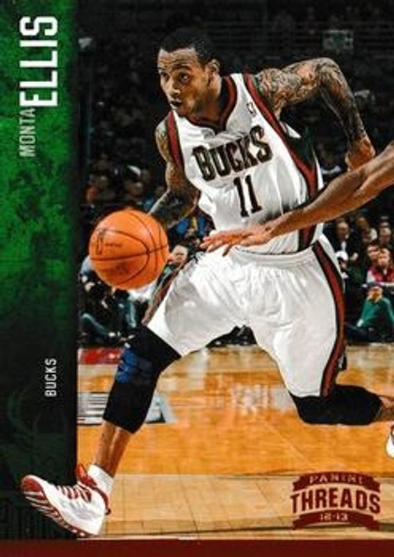 The Monta Ellis 2012 Threads #82 Red Century Proof card is 1 of 7 Monta Ellis' card variations in the 2012 Threads set being tracked by Sports Card Investor, including Base, Silver Century Proof /99, Gold Century Proof /25, Platinum Century Proof /10, and Private Signings.