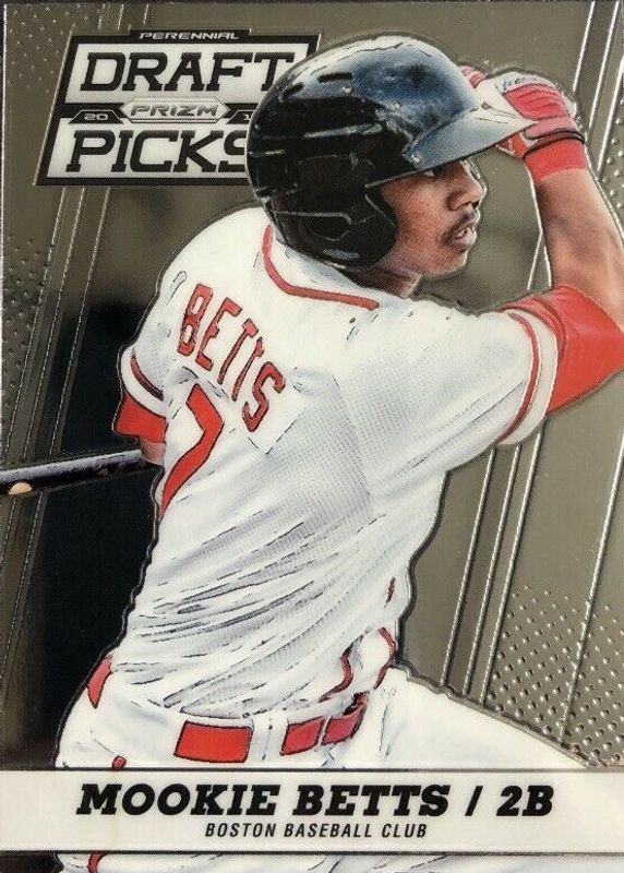 The Mookie Betts 2013 Prizm Draft Picks #46 Base card in Raw condition has moved up $0.70 (+13.2%) in the last 30 days and was last sold for $6.00 .