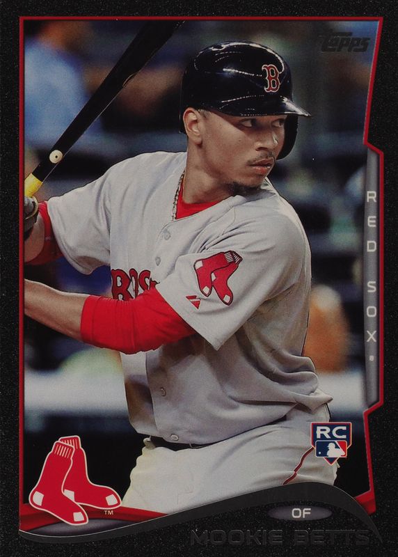 The Mookie Betts 2014 Topps Update #US-26 Black /63 (Batting) Rookie card in Raw condition has not changed in price in the last 30 days and was last sold for $1,300.00 .