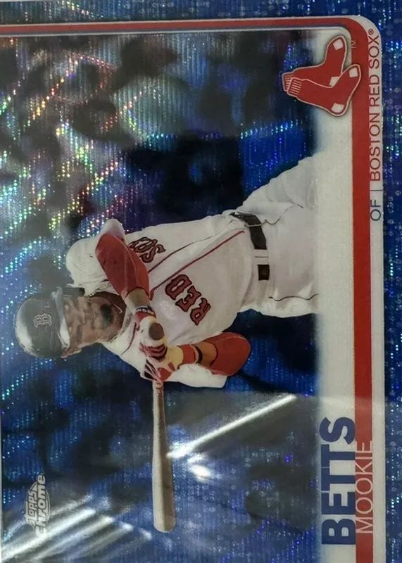 Auctions Ending Soon for Mookie Betts 2019 Topps Chrome #50 Blue Wave Refractor /75 (Batting) RAW