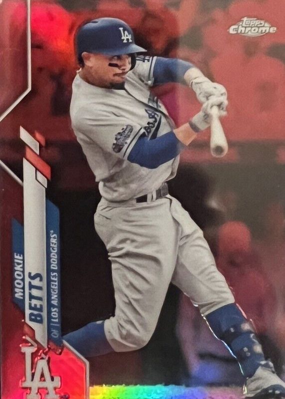 This card is 1 of 18 Mookie Betts' card variations in the 2020 Topps Chrome set being tracked by Sports Card Investor, including Base, Negative Refractor, Pink Refractor, Prism Refractor, and Refractor.