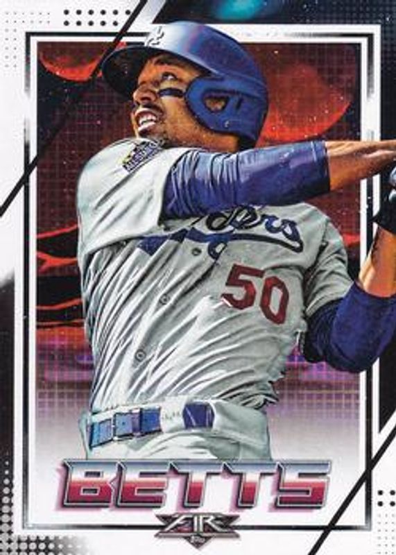 The Mookie Betts 2020 Topps Fire #56 Base card is 1 of 18 Mookie Betts' card variations in the 2020 Topps Fire set being tracked by Sports Card Investor, including Blue Chip, Flame, Gold Minted, Onyx, and Red Blaze.
