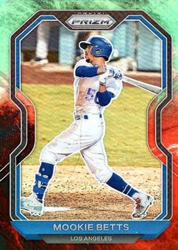 The Mookie Betts 2021 Prizm #244 Cosmic Haze card is 1 of 94 Mookie Betts' card variations in the 2021 Prizm set being tracked by Sports Card Investor, including Base, Blue, Blue Velocity, Carolina Blue, and Giraffe.