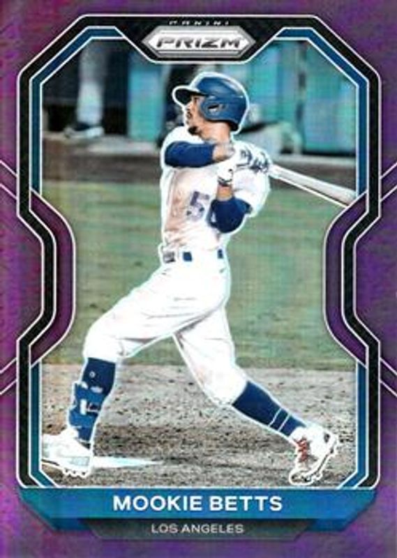 The Mookie Betts 2021 Prizm #244 Purple card is 1 of 94 Mookie Betts' card variations in the 2021 Prizm set being tracked by Sports Card Investor, including Base, Blue, Blue Velocity, Carolina Blue, and Cosmic Haze.