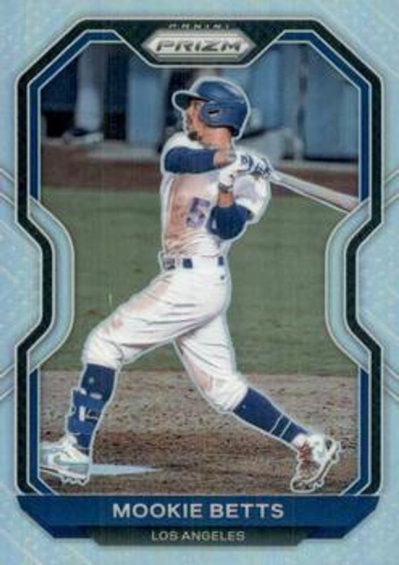 The Mookie Betts 2021 Prizm #244 Silver card is 1 of 94 Mookie Betts' card variations in the 2021 Prizm set being tracked by Sports Card Investor, including Base, Blue, Blue Velocity, Carolina Blue, and Cosmic Haze.