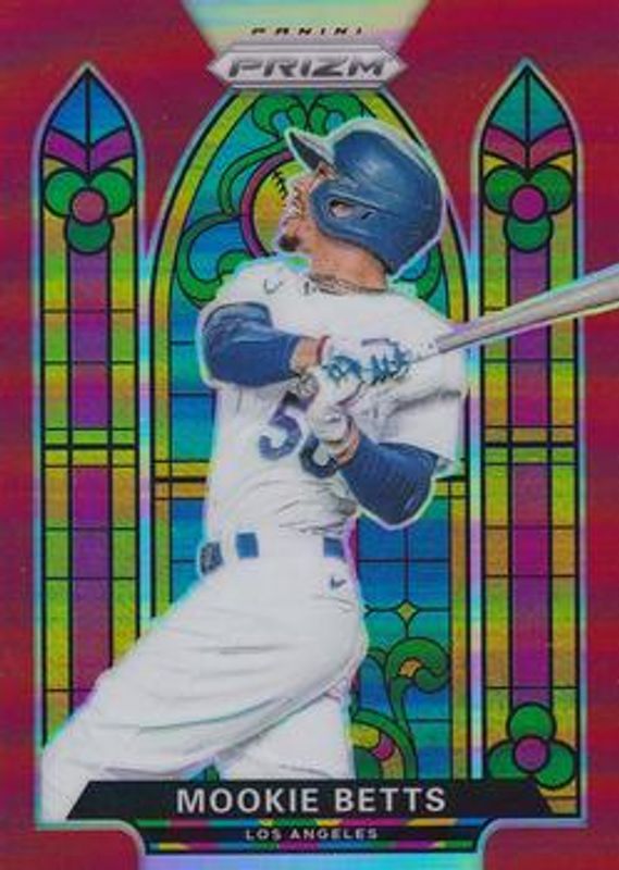 The Mookie Betts 2021 Prizm #SG-2 Stained Glass - Red card is 1 of 94 Mookie Betts' card variations in the 2021 Prizm set being tracked by Sports Card Investor, including Base, Blue, Blue Velocity, Carolina Blue, and Cosmic Haze.