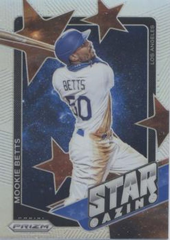 The Mookie Betts 2021 Prizm #SG8 Star Gazing - Silver card is 1 of 94 Mookie Betts' card variations in the 2021 Prizm set being tracked by Sports Card Investor, including Base, Blue, Blue Velocity, Carolina Blue, and Cosmic Haze.