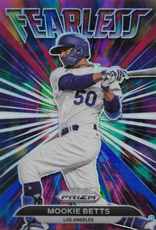 The Mookie Betts 2022 Prizm #FL-5 Fearless - Silver card is 1 of 82 Mookie Betts' card variations in the 2022 Prizm set being tracked by Sports Card Investor, including Base, Blue, Blue Velocity, Carolina Blue, and Cosmic Haze.