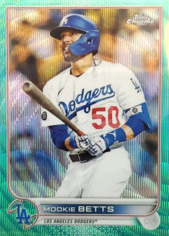 Mookie Betts 2022 Topps Chrome Aqua Lava Refractor 195/199 #100 - L.A Dodgers