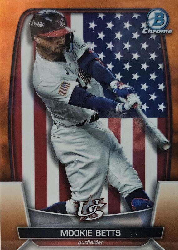 2023 Bowman Chrome Mookie Betts USA Flag Orange Refractor #/25 #WBC-86