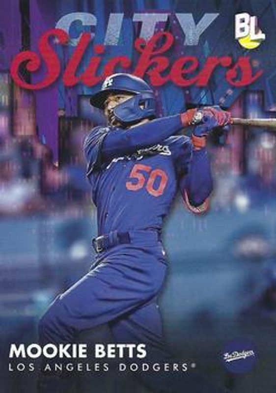 The Mookie Betts 2023 Topps Big League #CS-13 City Slickers card is 1 of 17 Mookie Betts' card variations in the 2023 Topps Big League set being tracked by Sports Card Investor, including #285 Base, #100 Base, #100 Electric Orange, #100 Red Foil, and #285 Red Foil.