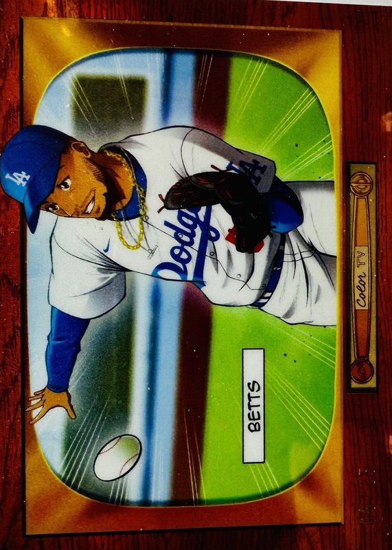 This card is 1 of 5 Mookie Betts' card variations in the 2024 Bowman set being tracked by Sports Card Investor, including 1955 Bowman Anime /(SSP), 1955 Bowman Anime - Gold Refractor /50, 1955 Bowman Anime - Red Refractor /5, and 1955 Bowman Anime - Superfractor /1.