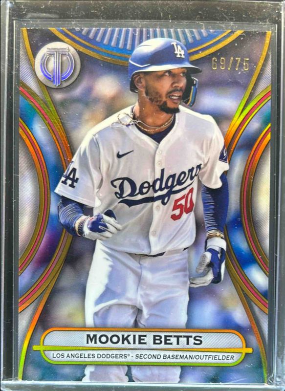 The Mookie Betts 2025 Topps Tribute #80 Gold /75 card is 1 of 20 Mookie Betts' card variations in the 2025 Topps Tribute set being tracked by Sports Card Investor, including Base, Blue /150, Green /99, Purple /50, and Orange /25.