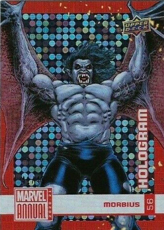 The Morbius 2020 Annual #56 Foilboard Hologram /49 card in Raw condition has not changed in price in the last 30 days and was last sold for $78.00 .