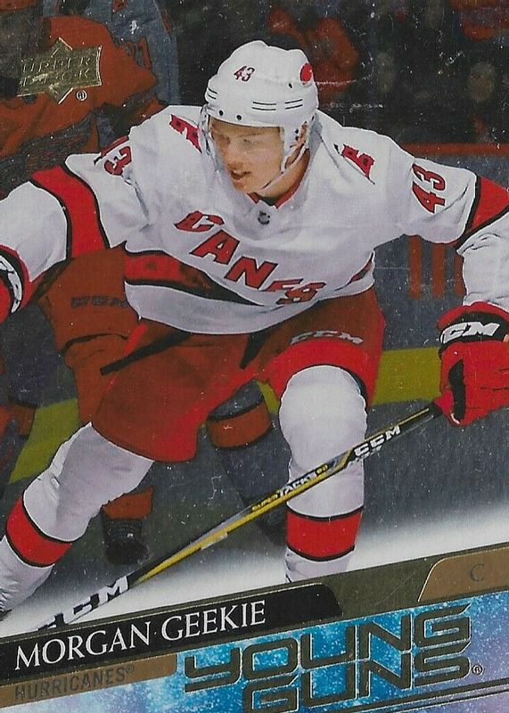 Morgan Geekie's Hockey cards are available in at least 19 sets. Morgan Geekie's biggest 7-day price movers are 2020 Upper Deck #210 Young Guns - Silver Foil, 2025 Upper Deck MVP #2 Printing Plates Yellow & Black /1, and 2025 Upper Deck MVP #2 Base.