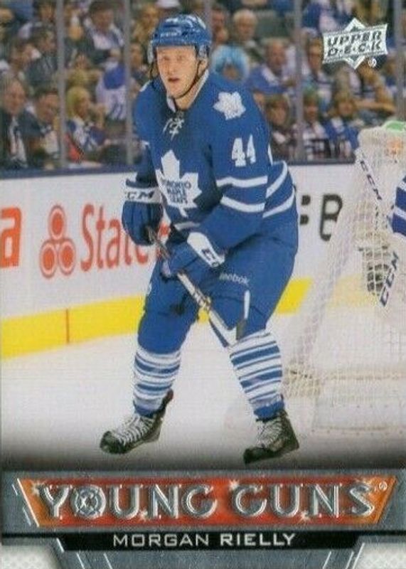 Morgan Rielly's Hockey cards are available in at least 123 sets. Morgan Rielly's biggest 7-day price movers are 2013 Upper Deck #218 Young Guns Base, 2013 Upper Deck #218 Young Guns - UD High Gloss /10, and 2022 Topps Chrome NHL Sticker Collection #473 Refractor /99.