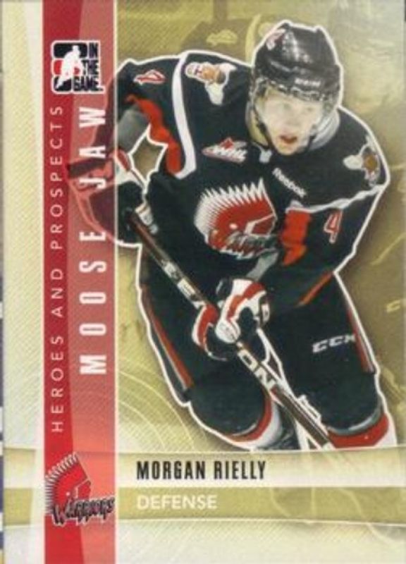 The Morgan Rielly 2011 In The Game Heroes & Prospects #82 Base card is 1 of 21 Morgan Rielly's card variations in the 2011 In The Game Heroes & Prospects set being tracked by Sports Card Investor, including Autographs, Class of 2012, Game Used Emblems Black, Game Used Emblems Silver, and Game Used Jersey Autographs Black.