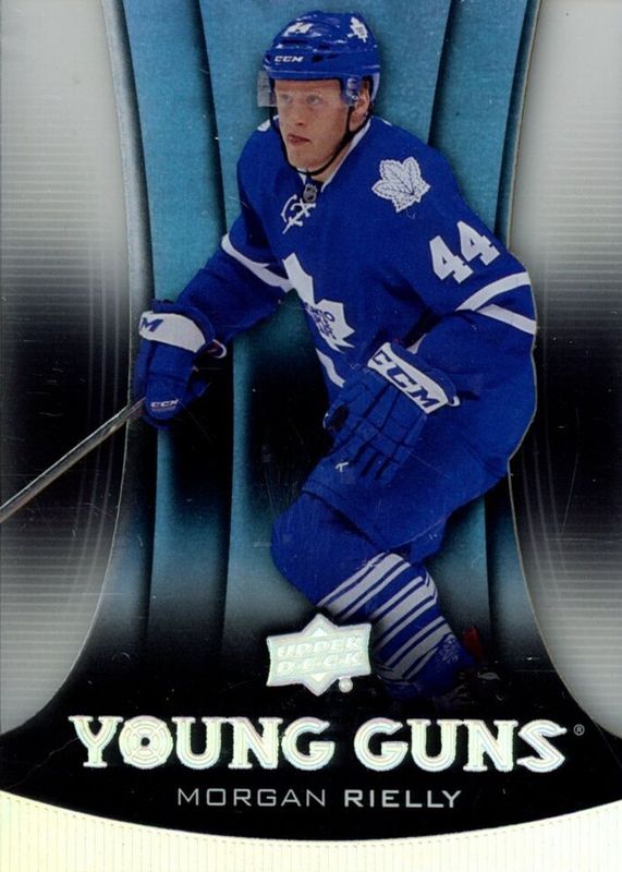 This card is 1 of 5 Morgan Rielly's card variations in the 2013 Upper Deck set being tracked by Sports Card Investor, including Young Guns Base, Young Guns - Jumbo, Young Guns - UD Exclusives /100, and Young Guns - UD High Gloss /10.