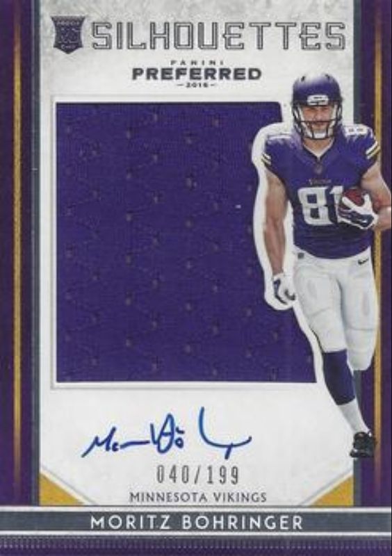 The Moritz Bohringer 2016 Preferred #100 Base /49 Rookie card is 1 of 17 Moritz Bohringer's card variations in the 2016 Preferred set being tracked by Sports Card Investor, including Base /49, Blue /49, Purple /25, Gold /10, and Green /5.