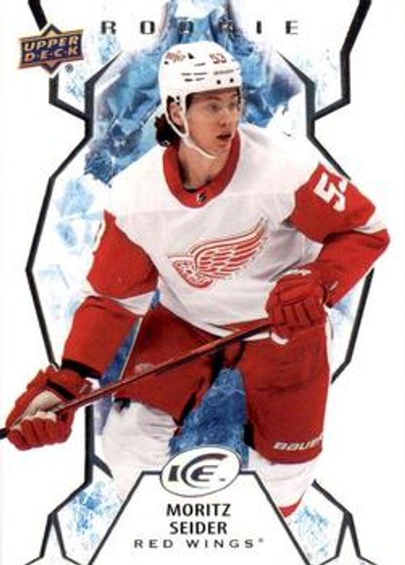 The Moritz Seider 2021 Upper Deck Ice #148 Base /999 Rookie card is 1 of 51 Moritz Seider's card variations in the 2021 Upper Deck Ice set being tracked by Sports Card Investor, including Base /999, Ice Blue, Jersey, Lavender, and Orange.