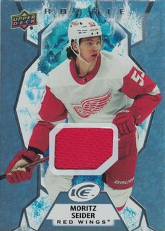 The Moritz Seider 2021 Upper Deck Ice #148 Jersey Rookie card is 1 of 51 Moritz Seider's card variations in the 2021 Upper Deck Ice set being tracked by Sports Card Investor, including #248 Base /999, #148 Base /999, #148 Ice Blue, #148 Lavender, and #148 Orange.