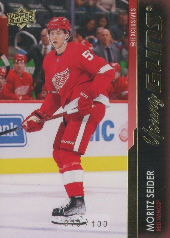 The Moritz Seider 2021 Upper Deck #469 Young Guns - UD Exclusives /100 Rookie card in Raw condition has not changed in price in the last 30 days and was last sold for $353.91 .