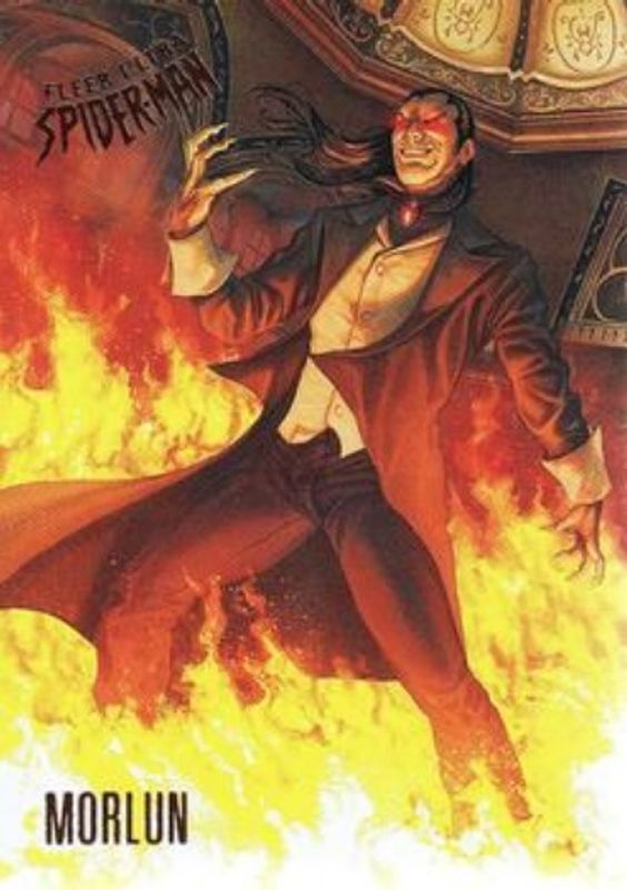 The Morlun 2017 Fleer Ultra Spider-Man #57 Base card is 1 of 28 Morlun's card variations in the 2017 Fleer Ultra Spider-Man set being tracked by Sports Card Investor, including Silver Web Foil, Gold Web Foil Autographs /49, Printing Plate Black /1, Printing Plate Cyan /1, and Printing Plate Magenta /1.