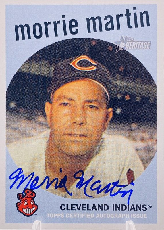 The Morrie Martin 2008 Topps Heritage #ROA-MM Real One Autographs card in Raw condition has not changed in price in the last 30 days and was last sold for $15.00 .