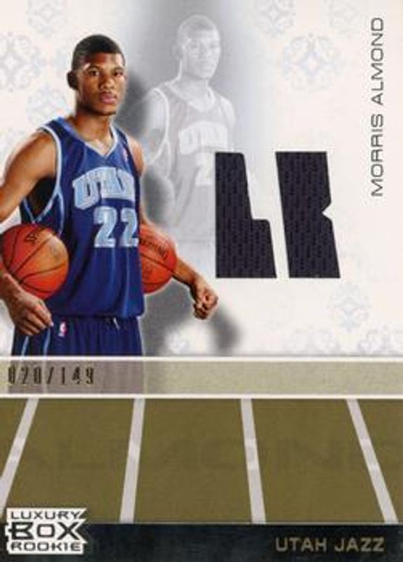 The Morris Almond 2007 Topps Luxury Box #RR-MA Rookie Relics - Gold /149 card is 1 of 13 Morris Almond's card variations in the 2007 Topps Luxury Box set being tracked by Sports Card Investor, including Base Rookie /669, Bronze /249, Silver /75, Gold /1, and Platinum /1.