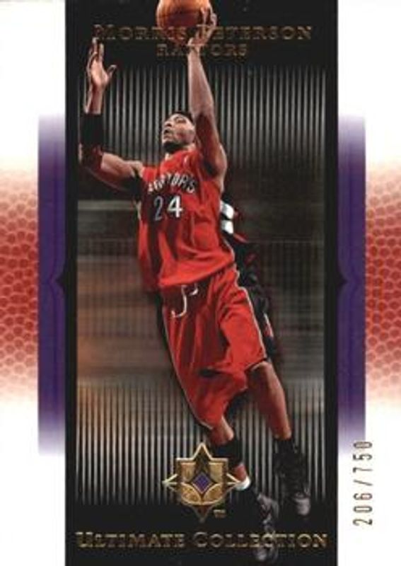 The Morris Peterson 2005 Upper Deck Ultimate Collection #120 Base /750 card is 1 of 4 Morris Peterson's card variations in the 2005 Upper Deck Ultimate Collection set being tracked by Sports Card Investor, including Blue /125, Red /50, and Silver /25.