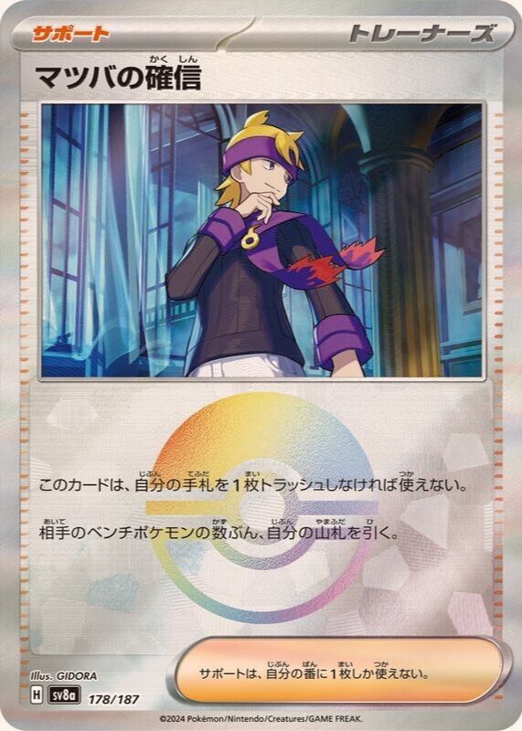 This card is 1 of 3 Morty's Conviction's card variations in the 2024 Japanese Scarlet & Violet: Terastal Fest ex set being tracked by Sports Card Investor, including Base, and Master Ball Reverse Holo.