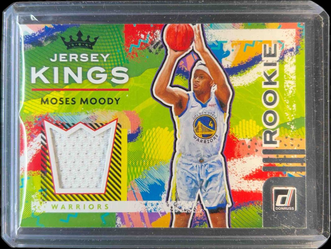 The Moses Moody 2021 Donruss #RJ-MMD Rookie Jersey Kings card is 1 of 61 Moses Moody's card variations in the 2021 Donruss set being tracked by Sports Card Investor, including Base, Choice, Green Ice, Green Laser, and Green & Yellow Laser.