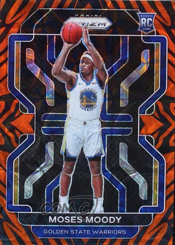 The Moses Moody 2021 Prizm #308 Choice Tiger Stripe /(SSP) Rookie card in Raw condition has not changed in price in the last 30 days and was last sold for $404.00 .