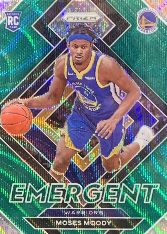 2021-22 Panini Moses Moody Prizm Green Wave Emergent Rookie RC Warriors #16