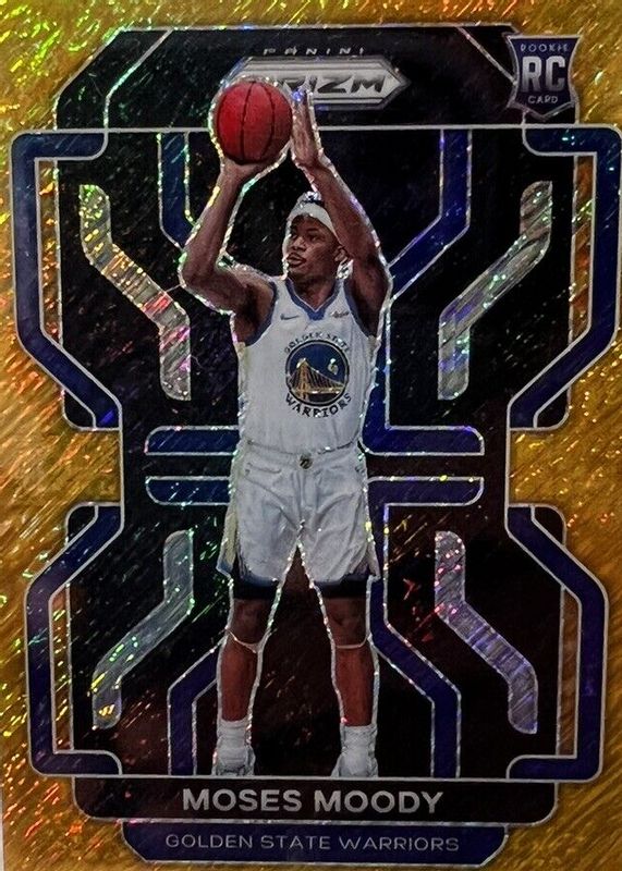 The Moses Moody 2021 Prizm #308 Gold Shimmer /10 Rookie card in Raw condition has not changed in price in the last 30 days and was last sold for $317.69 .