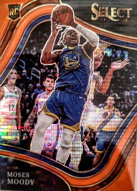 This card is 1 of 132 Moses Moody's card variations in the 2021 Select set being tracked by Sports Card Investor, including Concourse, Concourse Green Ice, Concourse Green White Purple, Concourse Silver, and Courtside.